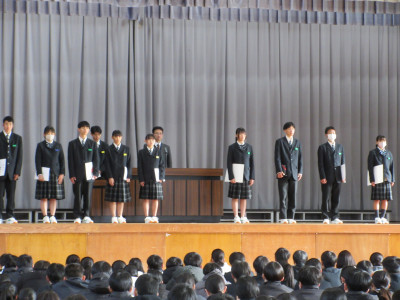 夏の高校野球選手権大会の壮行会を行いました。野球部主将が大会に向けての決意を述べ、応援団がエールを送りました。宇和高校の1回戦は7月12日(土)丸山球場 第2試合 対宇和島南中等教育学校 となっています。皆さんも応援してください。