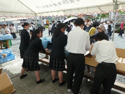 5月10日のPTA総会に合わせて、生物工学科では「生物工学科フェア」を実施しました。生徒たちが育てた野菜や花の苗、生徒たちが作ったマフィンやミカンジュース等を販売しました。保護者を含め、多くの方々に買っていただきました。